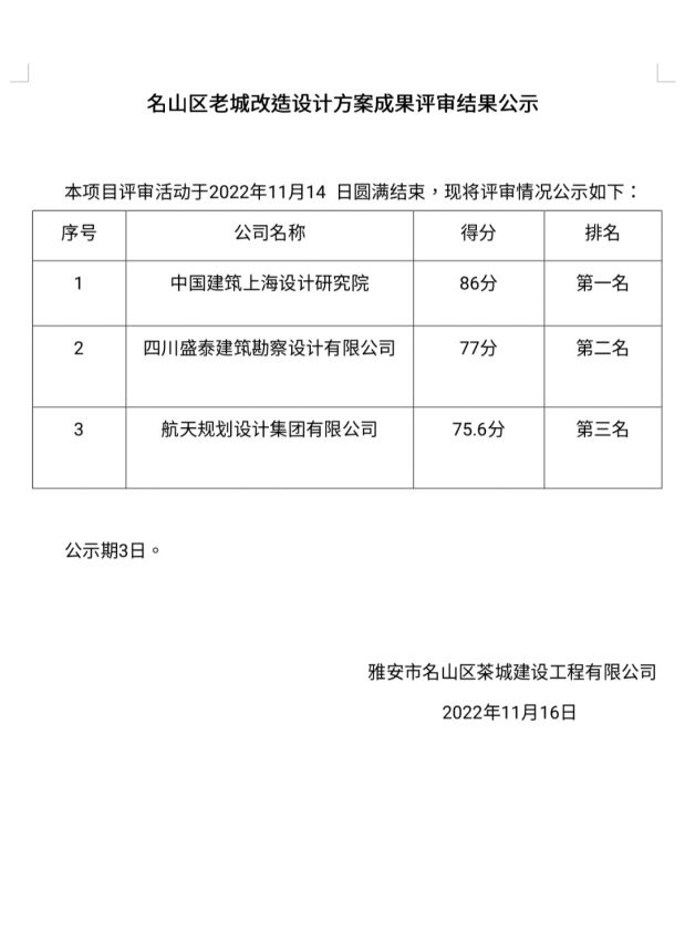 名山區(qū)老城改造設(shè)計(jì)方案成果評(píng)審結(jié)果公示