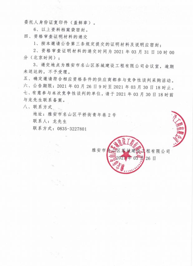 雅安市名山區(qū)茶城建設(shè)工程有限公司 關(guān)于公開招募2026年供應商入庫的公告...